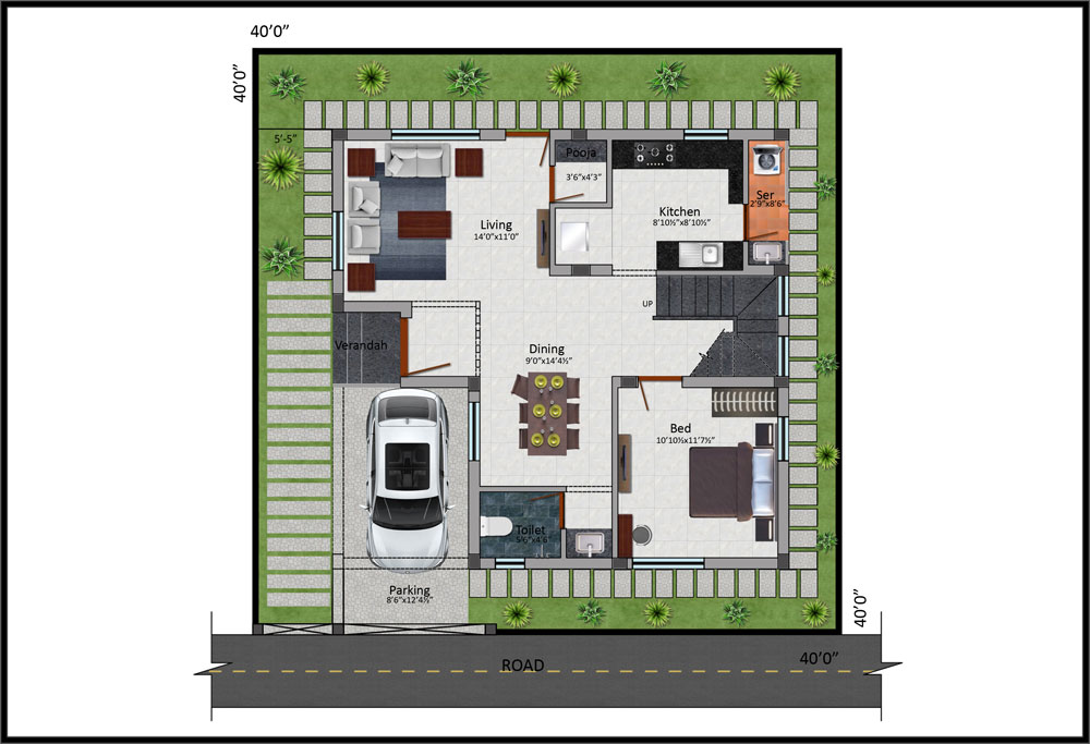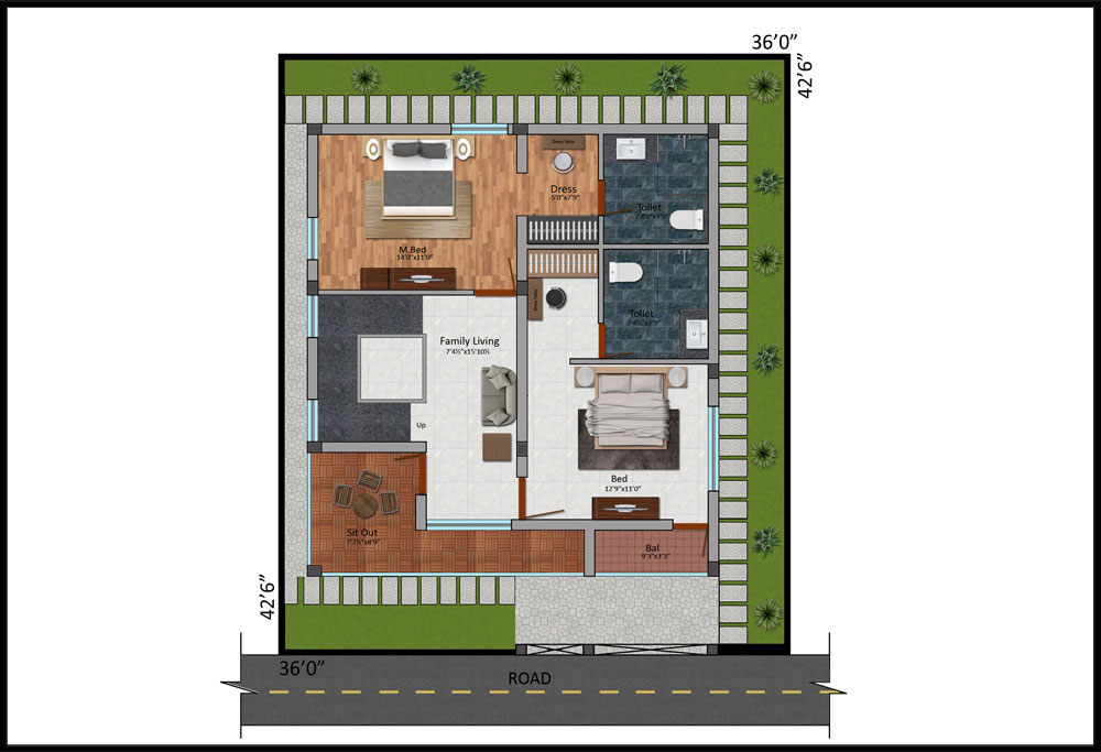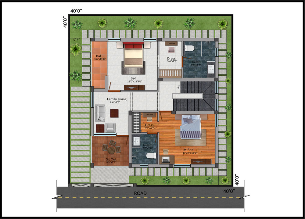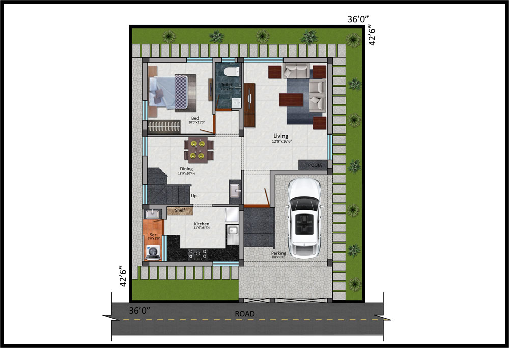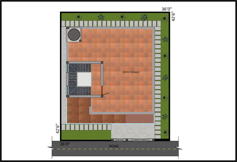 Roof Height | : | Ground floor 11’6” and Fist Floor 11’0” including roof slab thickness and Basement Height will be 3’0” form Road Lvl |